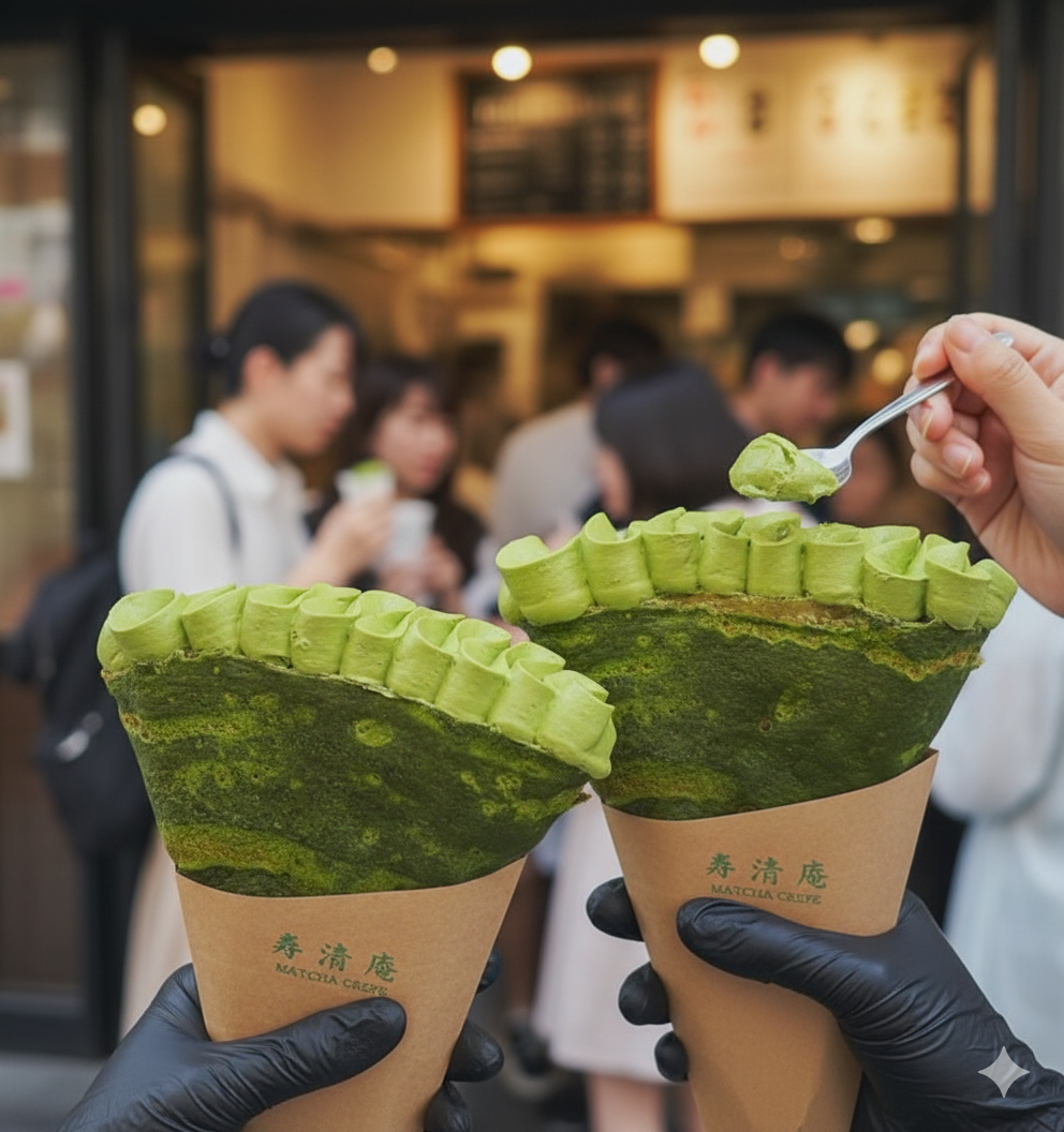 - 特徴: テイクアウト専門。お茶の「濃さ」を選べる抹茶クレープが中心。