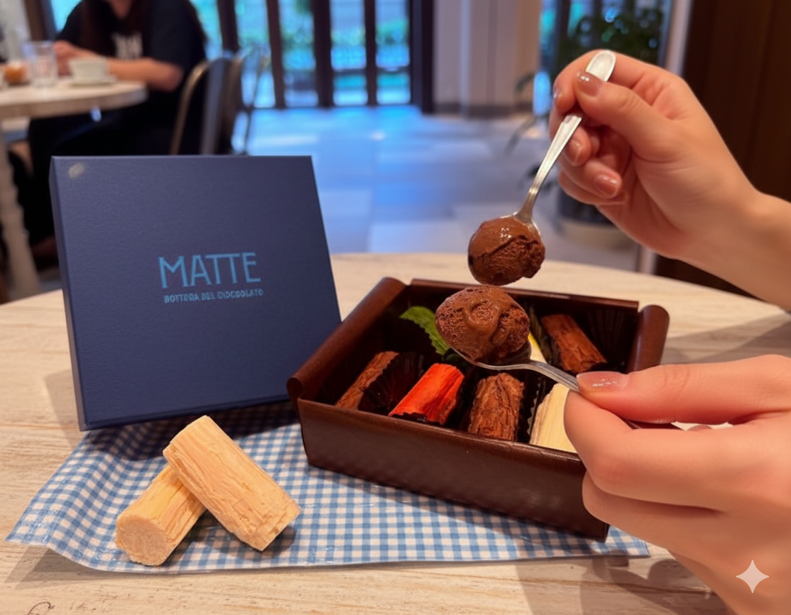 『MATTE Bottega del Cioccolato』は、単に甘いものを消費する場所ではなく、チョコレートという素材の可能性、そしてイタリアの奥深い食文化を「体験」させてくれる場所でした。