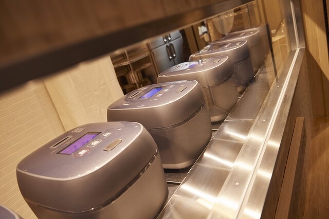 ここは、「ごはんの本当の美味しさ」を体験してもらうために作られた、まさに「ごはんが主役」のお店。象印が誇る最高級炊飯器「炎舞炊き」で炊き上げる、3種類もの絶品ごはんが、なんとおかわり自由。